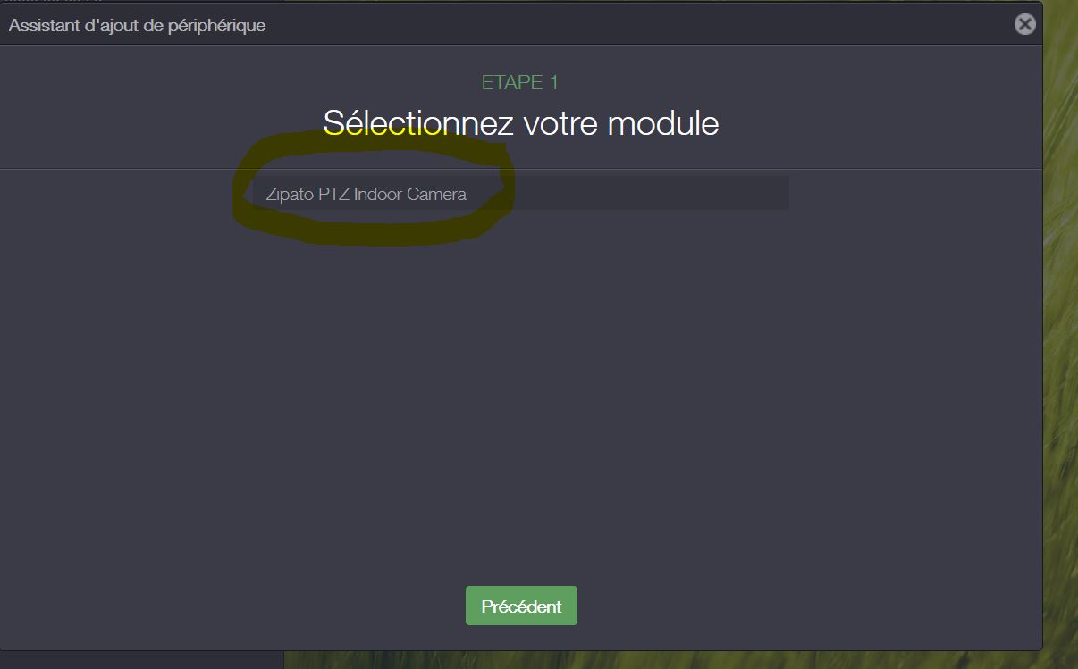I would like to Ip Camera to my zipabox. But, when I open the inclusion window, I don't the window described in the video tutorial. I have got the one attached (Zipato PTZ Indoor camera???).