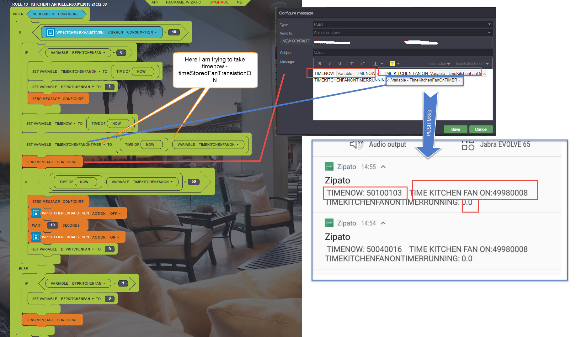 I have made a function for detecting a kitchen extract fan being on for too long, and give a push notification (and switch off power suplly in next step) if we forget it. I have made the function work part from one thing: i cannot seem to be able to subtract time values?