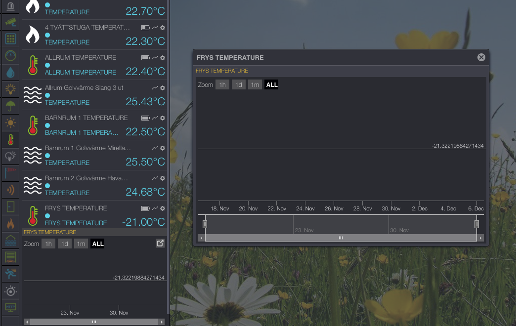 Hello I have a problem! My Oregon Temperature stopped sending values on 5 December. History of charts has failed. Rule Creator when I syncroniserar to clear all entered values, has got rules with the same number and it can not remove rules.