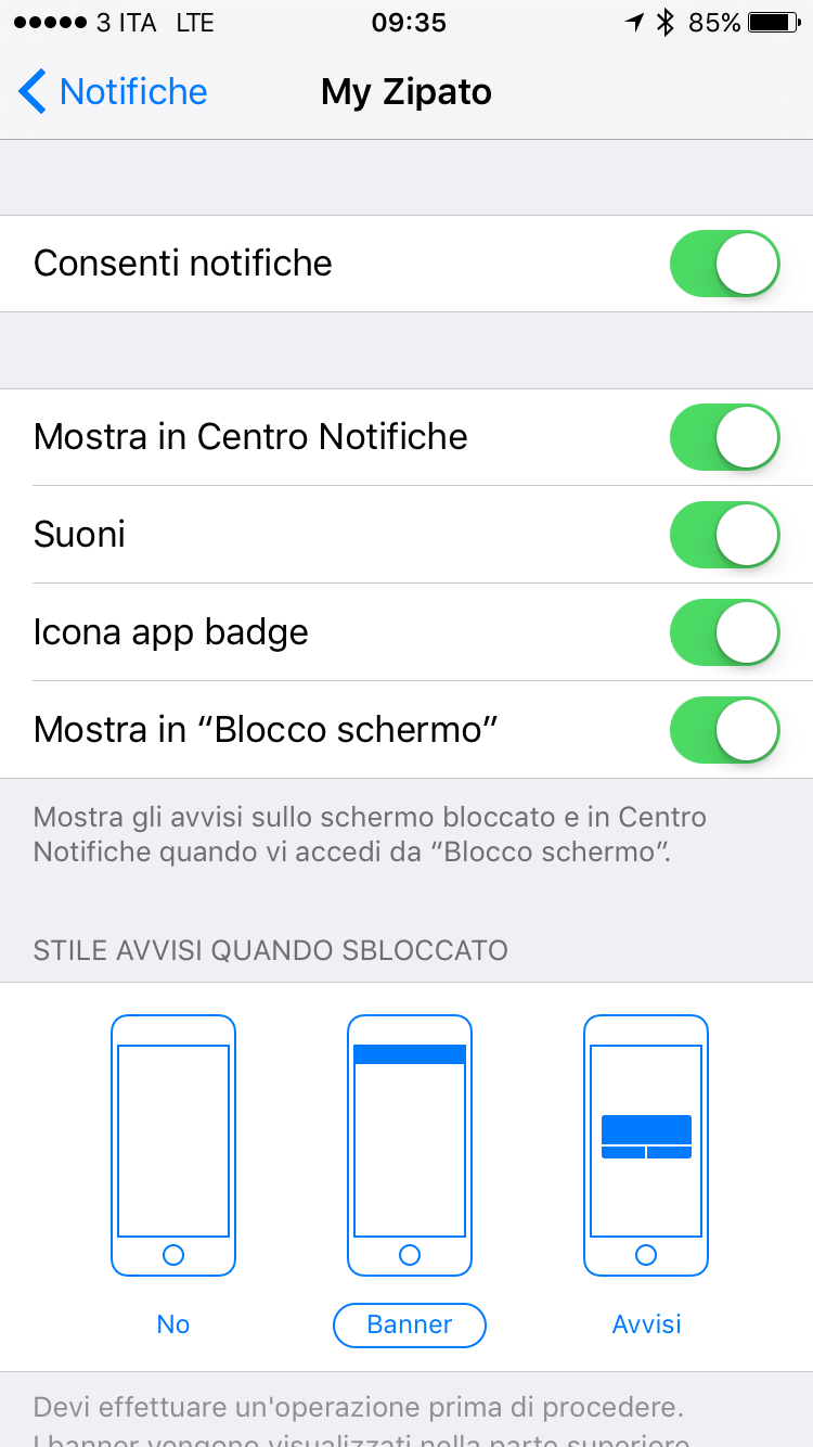 Of course the notification is configured in the right way (see attach) and I altro tried to remo the app and install again; restart the iphone, and so on.