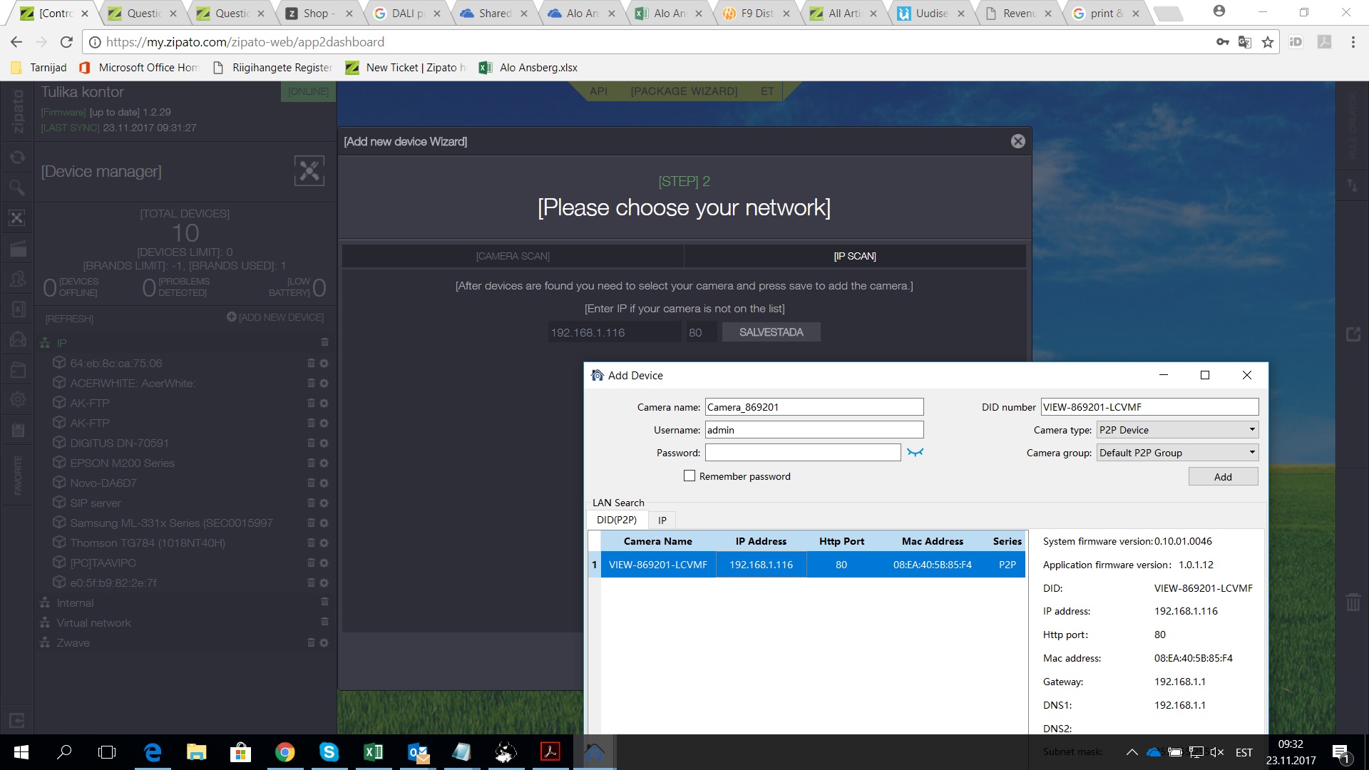 When I go to my.zipato and try to add new device, it finds it but it does'nt work. Under "Device manager" it shows NCM750GB and when I click on it there is "No endpoints". Under "Device browser" there is'nt even camera icon (when it was connected with patch cable, the icon appeard right after finding device) So I can't configure the camera even manually..