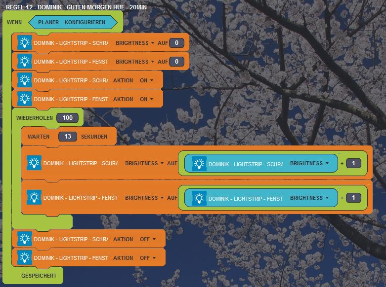 Any news about the repeat function, i think it isn´t working for me, i would like to fade i light in the morning from 0% to 100% brightness in 1% steps, but the light only goes on and stays at 1% :(