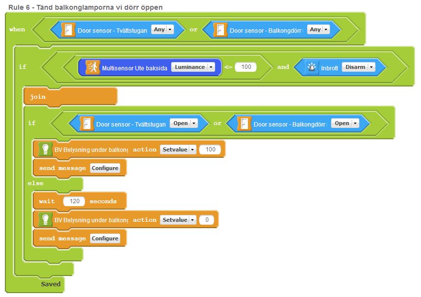 Rule dependent of a light sensor