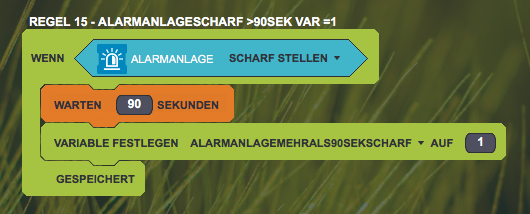 If Alarm armed AND Door open AND Variable Armed90Sek = 1