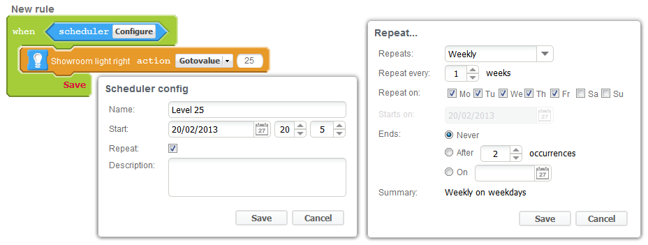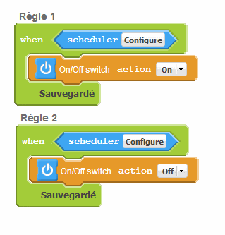 For your example I would suggest two rules with scheduler like you did in Regle02.png