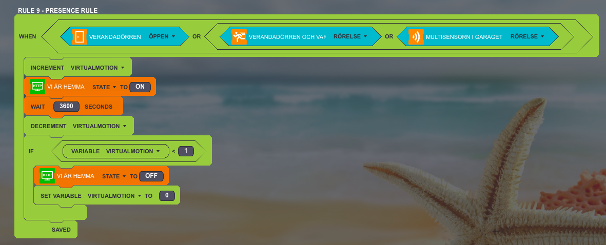 I am trying to set up "Are we at home right now?" rule that I want to work independent of order of events. The idea is that some actions should make the system draw the conclusion that we are at home. If none of these actions have occurred in the last hour, then we are probably away (or asleep).