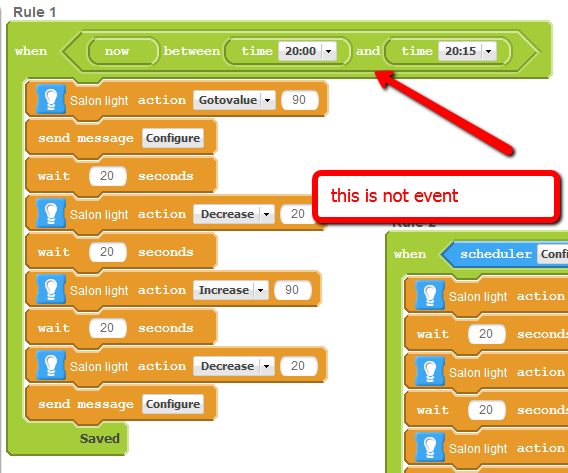 WHEN now between "time 20:00" and "time 20:15"