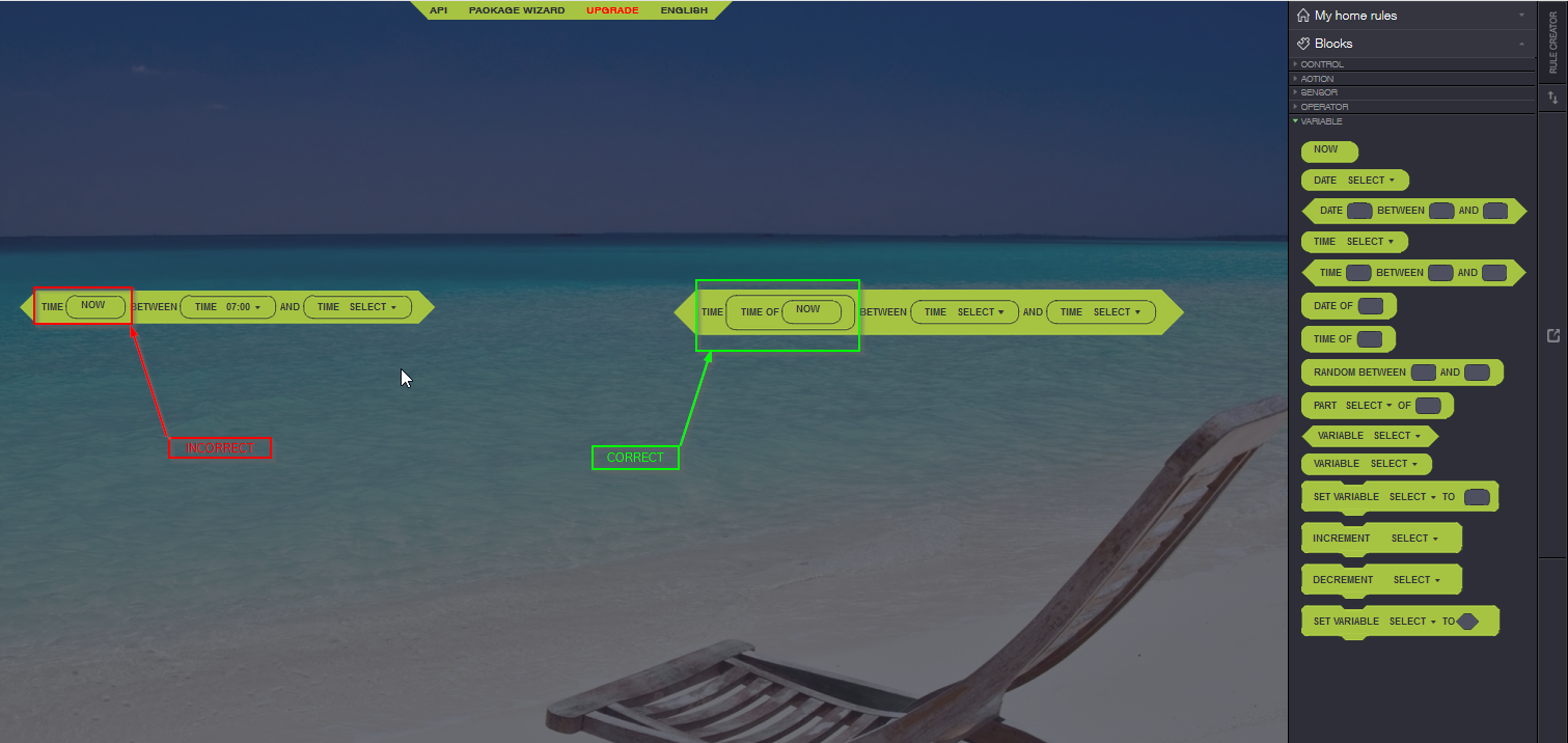 The first issue I see in your rules is the fact that you are not using the puzzle "TIME OF" before puzzle "NOW" see image attached.