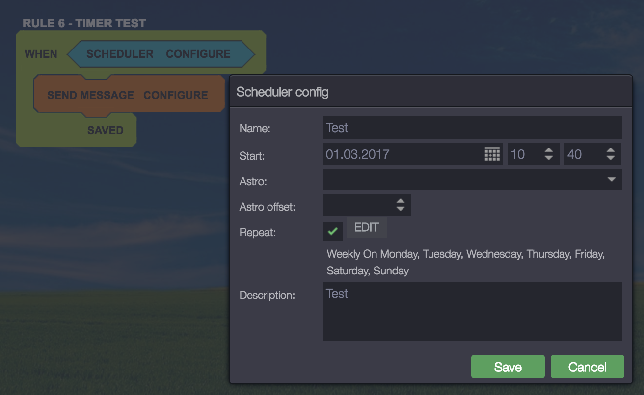Then I removed the rule with the scheduler repeating every day and created a new one. This still does not work...