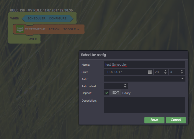 I don't want any timer and so on, there are several way to do it, but want it simple with one scheduler that only repeat once a hour, before I had one scheduler that repeated many times an hour but want to have less repeating scheduler.