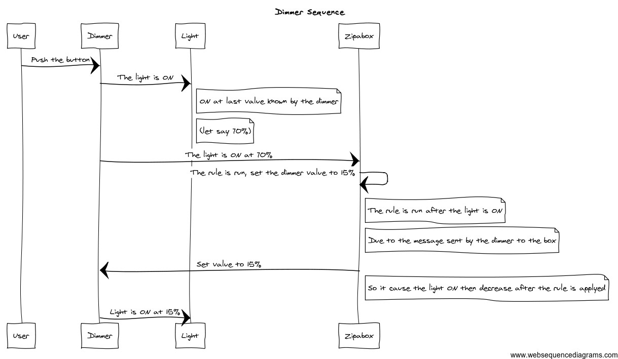 I did a rule that set the value to 15% during the night but when I push the button of my light, first it goes to the last value (let say 95%) and then the rule is called and the light is set to 15%. My rule is working but it is too slow and it is "hard" when you open the light during the night!.