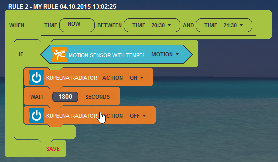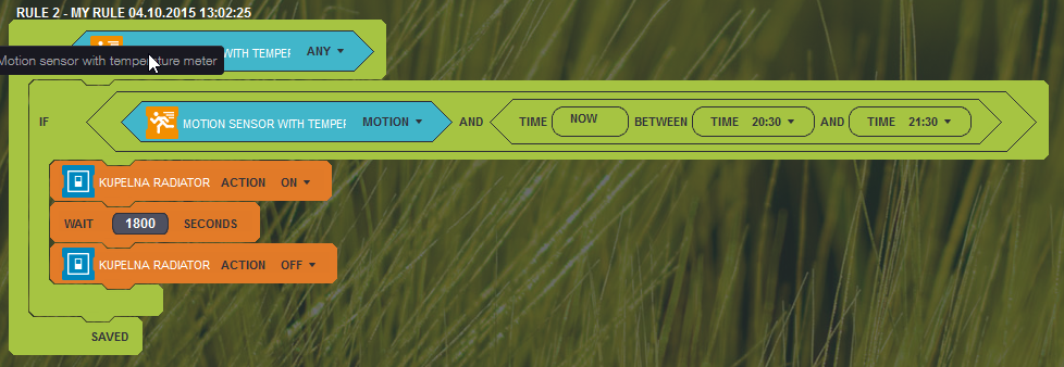 Another update to the rule as the previous rule turned off the radiator when the motion state changed back to no motion...