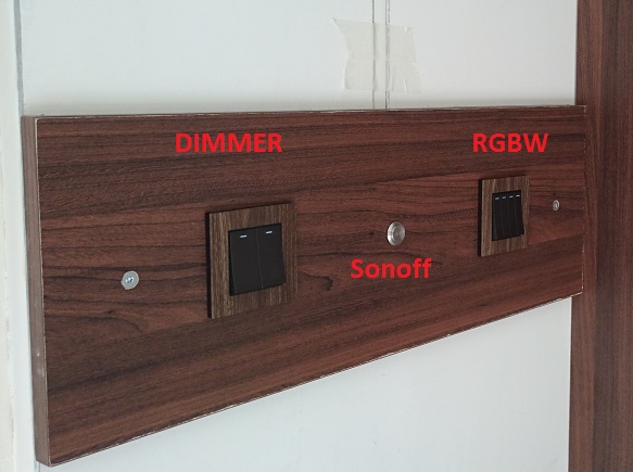 MASTER Controller is connected to half of the LED stripe and to momentary switches on the wall (IN1-IN4), SLAVE Controller is connected only to remaining LED stripe (SWITCHES.jpg)