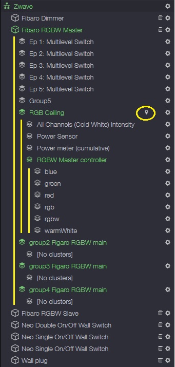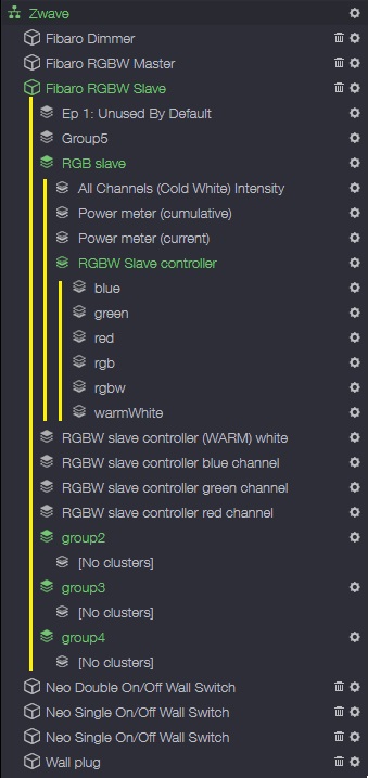 From this point controlling both RGBW Controllers should be possible using one set of switches even when Zipatile will be offline, disabled or something.