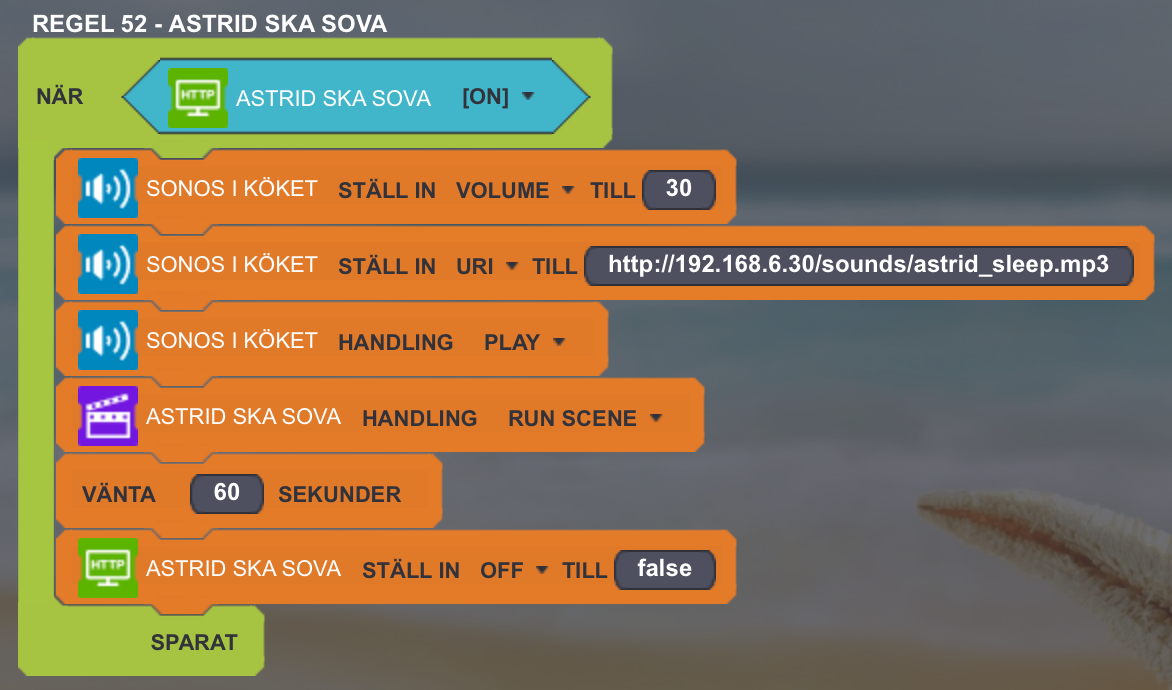 This is a rule that creates a specific scene when my 2 year old daughter shall go to sleep.