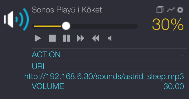 I'm trying exactly that, but at the moment nothing appears to be happening. I have a rule that is supposed to run in the morning, but in the event log the URI and action attributes are never changed. No sound is played. The volume is not even being set.