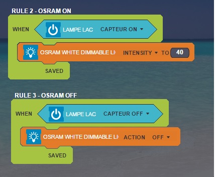 I create two rules like in the pictures attached, to set the value of an OSRAM light when a wall plug Fibaro is ON and power off the OSRAM when the Fibaro is off.