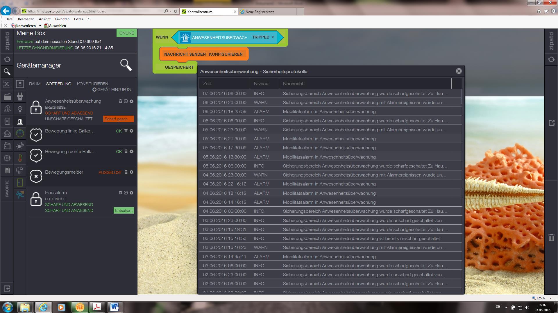 But when I looked up the data of the healt care partiton i found for the last two days some alarms, even though there was more than enought movement. So for example on the 5th of June I got an alarm at 13:30 and then every four hours. But all the time there was a lot of movement being detected! And despite all the movement the alarm came every four hours from then on.