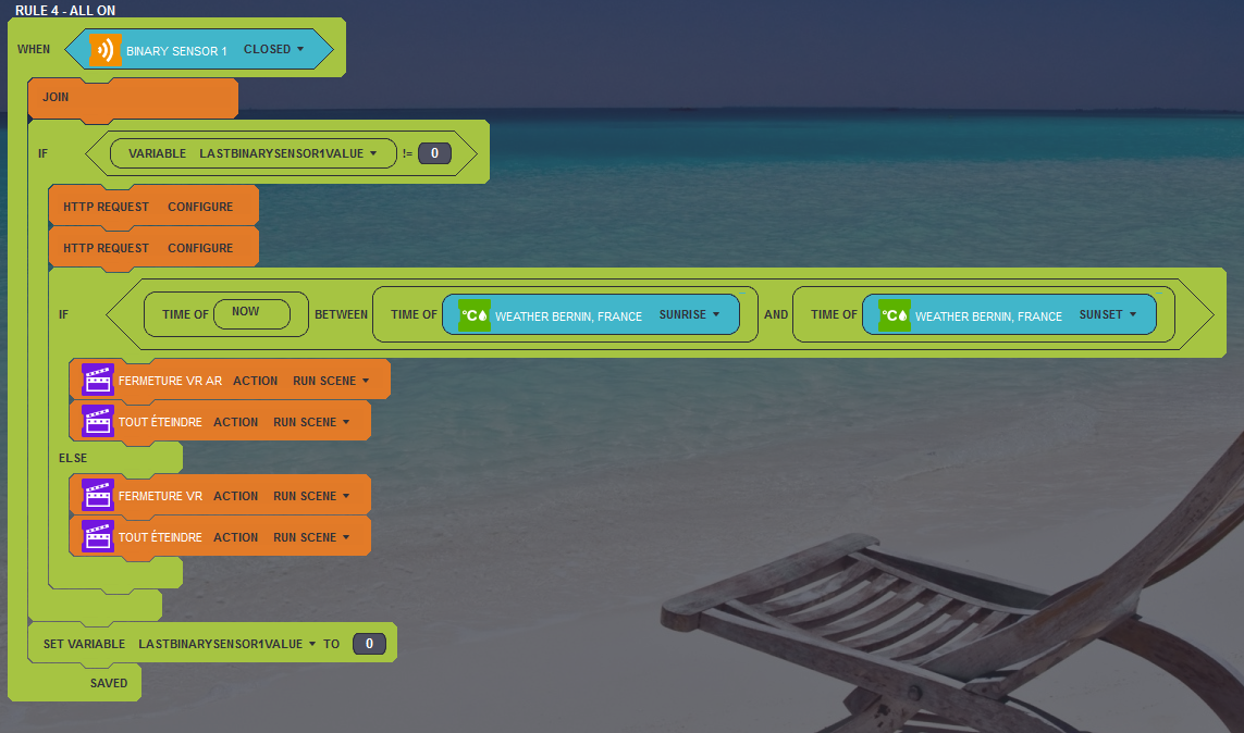 If I put my alarm on (not a zwave one) Then depeding on the hour of the day (day or night) I close all my roller shutter or only some of them. To make this condition I try to use the weather station and the sunset and sunrise information.