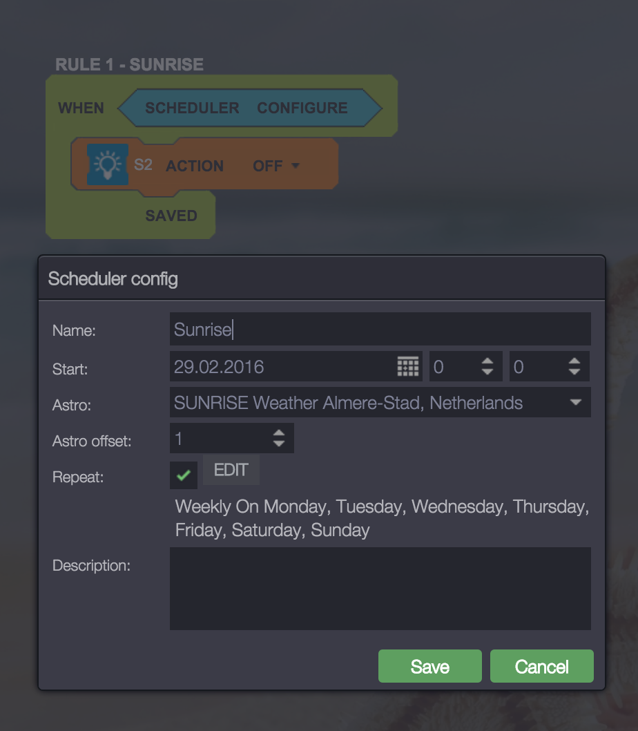 Sunset/Sunrise rule is not working