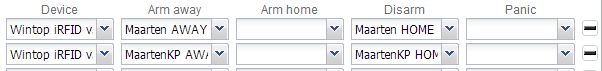 Looking at your settings the first slot is able to only ARM and not DISARM and the second slot is PANIC or DISARM. This means you have a code to ARM AWAY or HOME and to DISARM or PANIC. Can be useful though exept that you need several codes to do this does not make it easy to handle.
