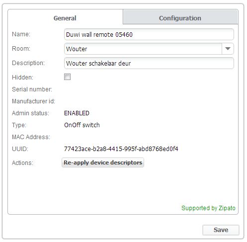 So, just created a separate little network with 2 DUWI 05431 controlling one FIBARO FGS221 - v2.1. I can already see that the reaction time is two or three times as fast as with the ZIPABOX controlling. The hypothesis on retransmission mechanisms consuming battery power still stands. Let's see now how long the battery will last. Sorry for asking support. The screenshot in attach clearly shows (right corner below) that ZIPATO is supporting at least the DUWI 05460. Again, if you have another battery operated wall switch to recommend, let us know...