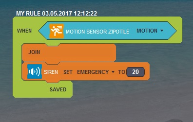 -We set up as squawk the zipatile internal siren, no siren asigned. Tried same rules, didn´t work.