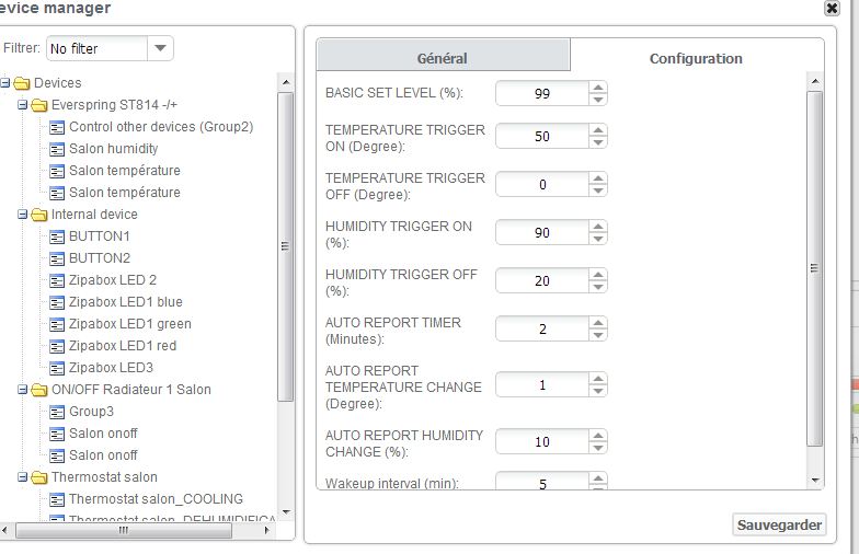 I found why, it is because the default value in the configuration tab of the st814 where rejected by the GUI. For example the GUI requied to have a TEMPERATURE TRIGGER ON less than 50 or by default it is 99. When I clicked on save, the GUI displayed these fields in red but because the current tab was "General" and no pop-up displayed I did not understand that was a problem on "configuration" tab. It could be nice to improve the information: may be a pop-up or to avoid a pop-up (that is not the idea of your GUI you could underline in red the tab ? What do you think?
