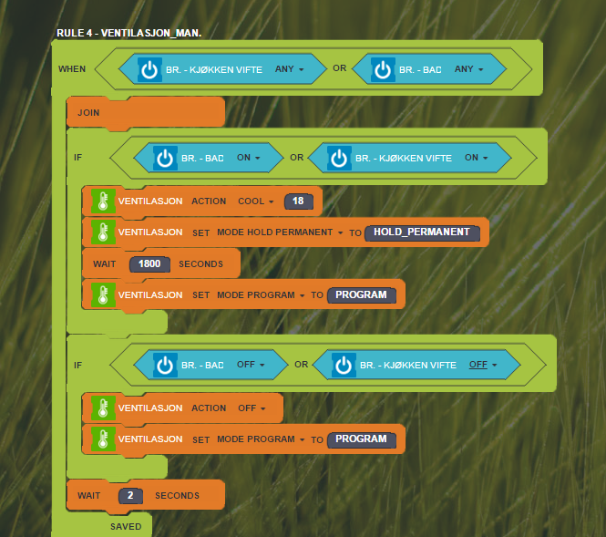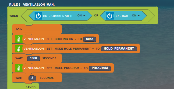 I have a rule that 2 wall switches is activating a thermostat to cool at 18*C, and set the mode to Hold Permanent, then after 1800sek it set it back to Run Program (another rule (auto mode) takes over).