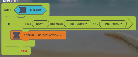 Hello, I am wondering if someone know how to create a rule that turn on for example a lamp if a sensor is triggered, but only between 22.00 and 05:00.