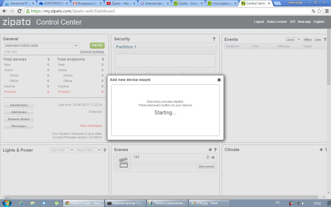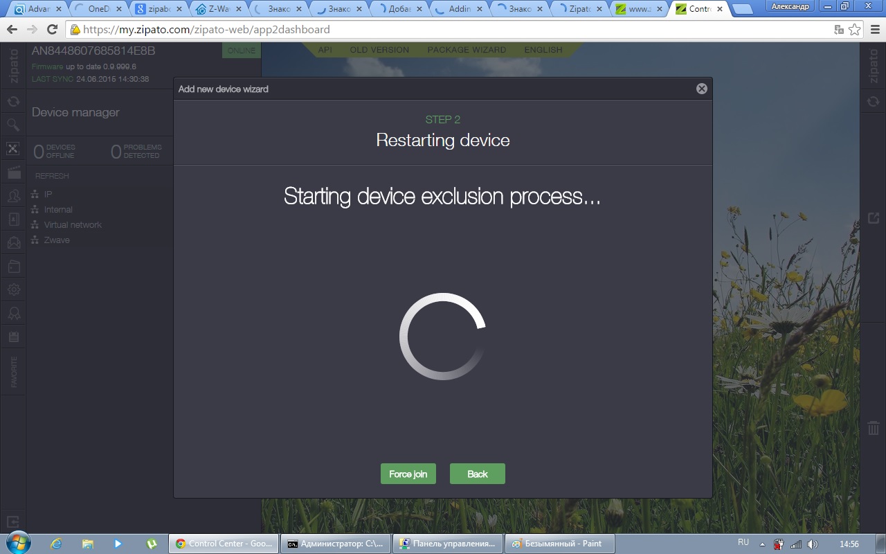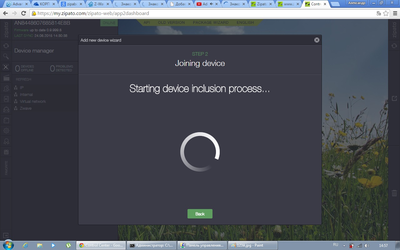When I try to add a device, through device browser>Add new device>Z-Wave, the process starts with no time left shown (look the attached files)