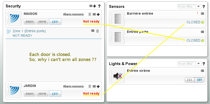 As you can see in the attach file, all door sensors are closed. Despite that, i can not arm partition and i don't know why ? This problem often occurs.
