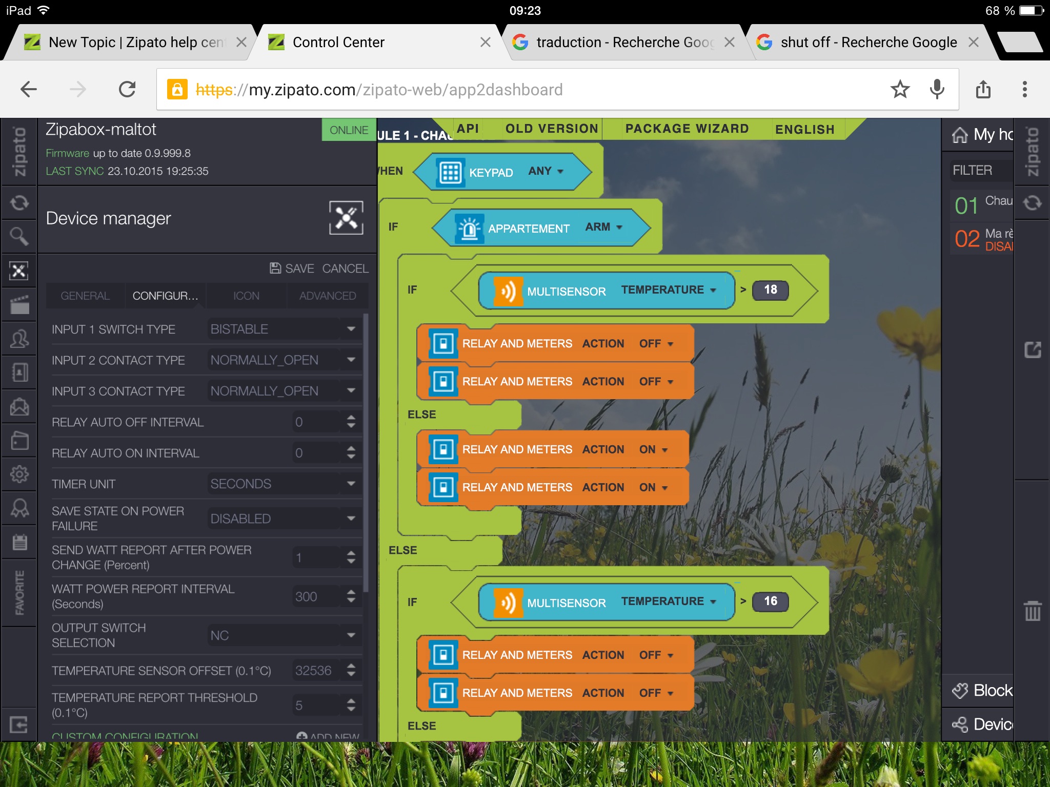 I want when the temperature is to high to shut off my heater with qubino on/off relay. But when i arm the system, relay automatically shut off. I confirm the sensor temperature is less than the trigger temperature i define. I also add the Qubino settings attached.