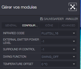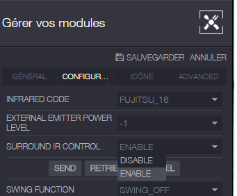 When i select IR mapping (FUJITSU_16 for my AC system) i only can use thermostat. I can't use anymore manual commands except "off" (since yesterday, all was working fine before)