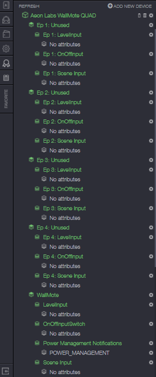 I am sure the problem is somewhere in the missing attributes on all the endpoints and/or the group associations list in the manual? I also wonder why the individual units "EP1 unused-EP4 unused" are "touch control" devices but the group unit "Wallmote" is a "touch sensor"?