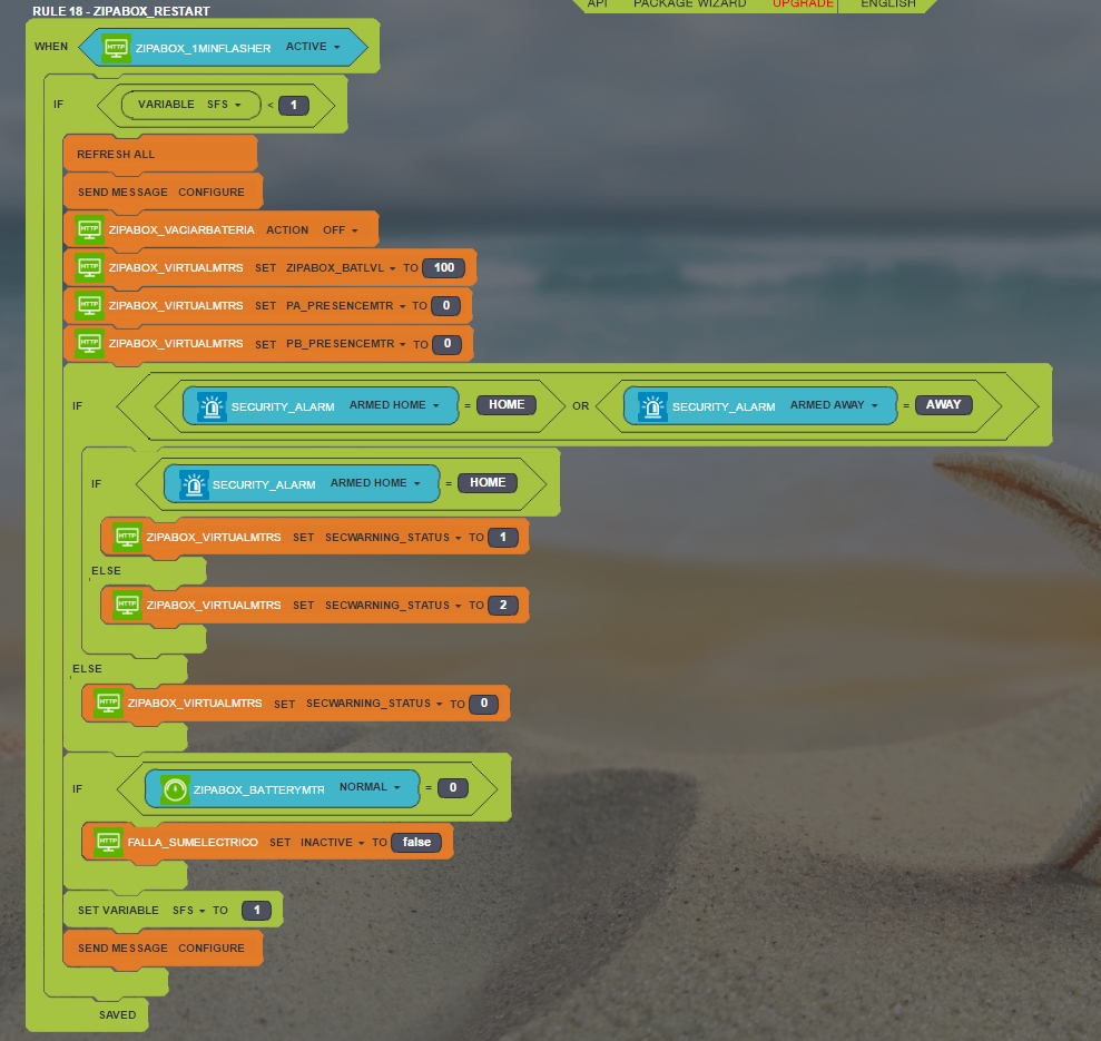 After a few months my rule number 2 started to be very long so I decided to split it in two rules, and then with some issues that firmware upgrades caused to my zipabox I decided to make a 5 repetition reboot housekeeping.