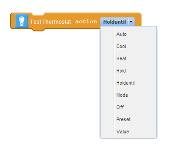 * Heat, Cool, Hold, Holduntil, off - there are the same actions as the buttons we have in the thermostat itself (but we cannot specify any value for these actions in the rule creator, except for the 'heat' action)