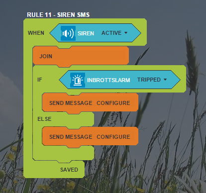 Can someone explain to me why this rules doesnt work? It always send the first textmessage. I want it to send the first textmessage if the siren is active and the alarm has been trippen. I the siren is active but the alarm has not been tripped i want it to send a different message. Otherwise i get a alarm message when the siren is low on battery and does a short beep.
