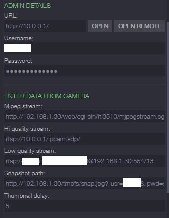 Hi, I have the same problem with yi camera dome. has anyone managed to open the video data stream? what are the configuration parameters?