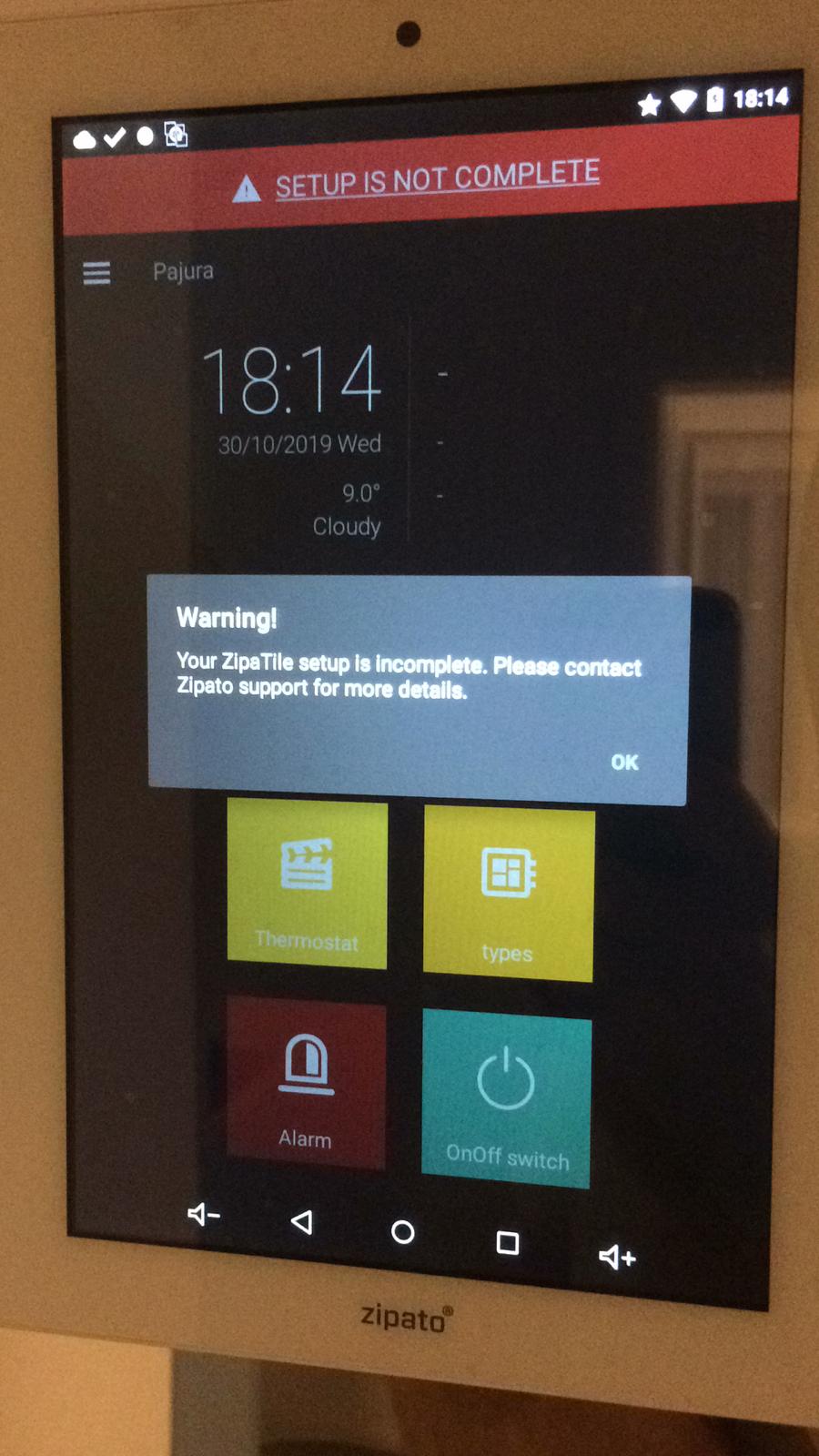 Since few days ago i get an annoying message from my Zipatile saying "SETUP NOT COMPLETE".