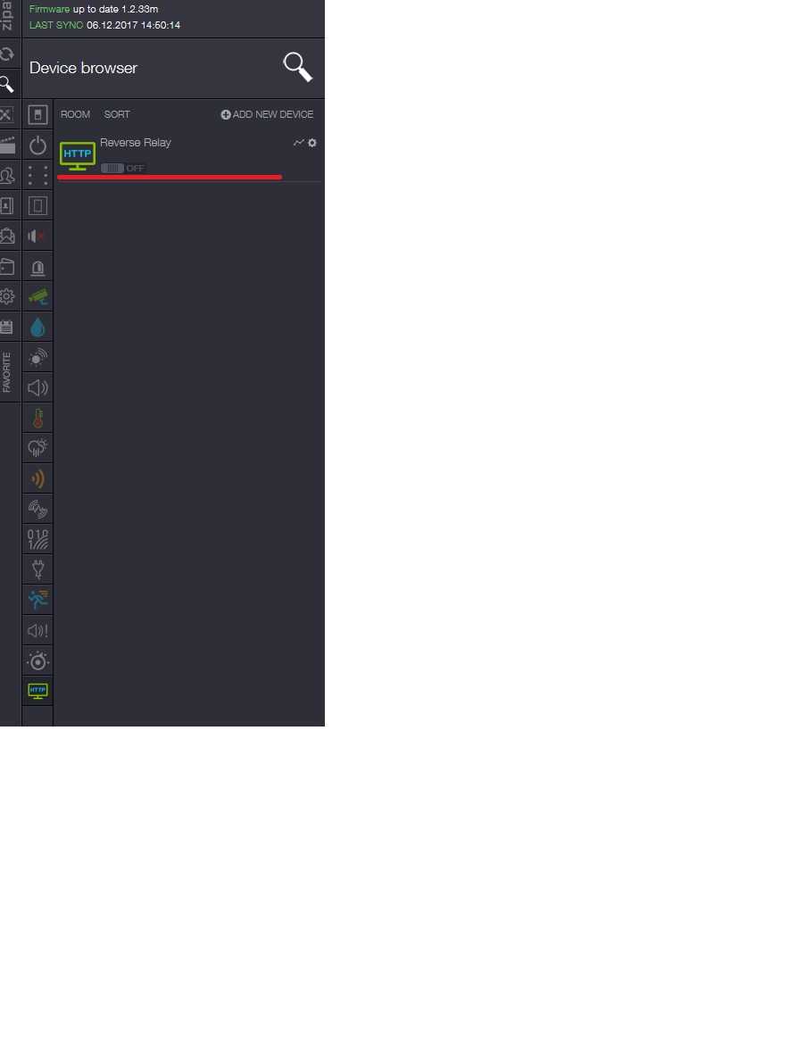 The workaround of the reverse logic of the physical relay is create virtual switch .