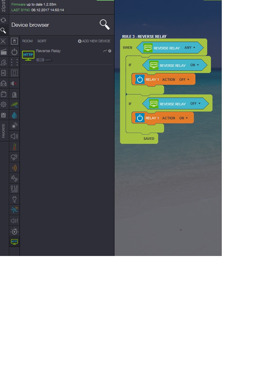 honestly I dont know how to reverse the function of the zipatile relay via a rule:-(