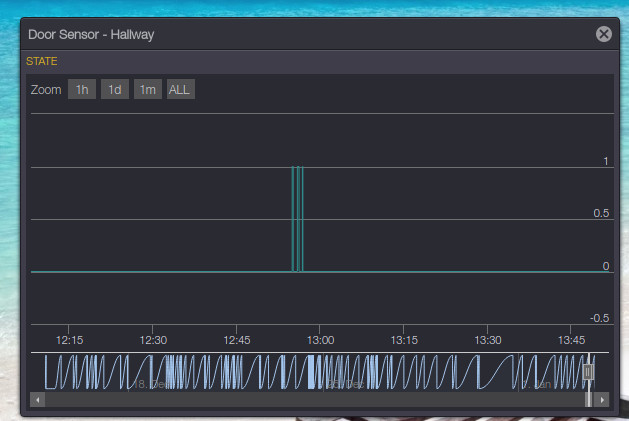 Unfortunately sometimes the door sensor detects some false-positives right after closing it and changes its state two or three times in just a few seconds. This causes the alarm to go off right away! Even before the exit delay was finished. This happend to me a few times now. See the attached screenshot for the event-log of the front-door. You can see it detects 3 open/close events even though there was only one. to be exact they occurred on 12:54, 12:55 and 12:56.