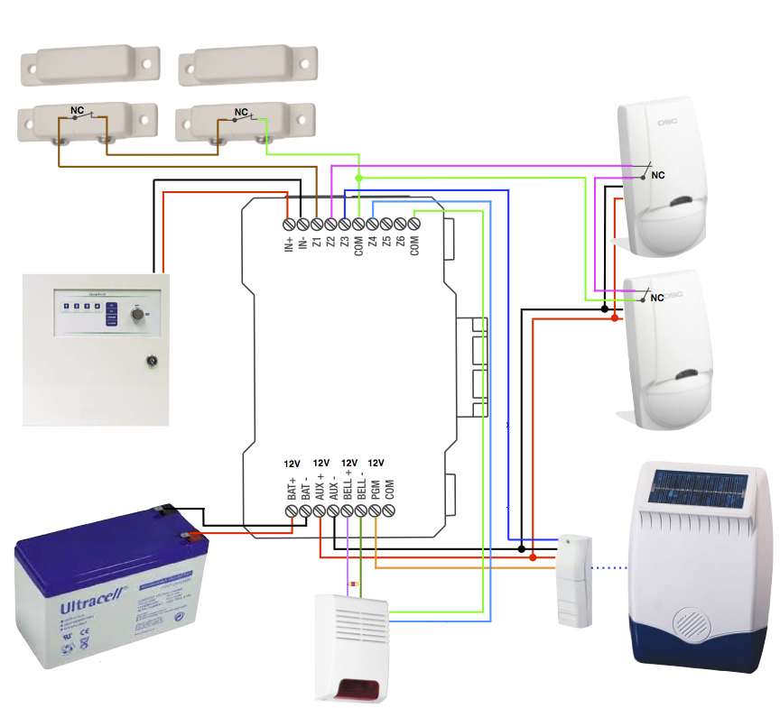 You can connect to the security expansion module as in the attachment. The following video will also help you or you can email support@zipato.com.
